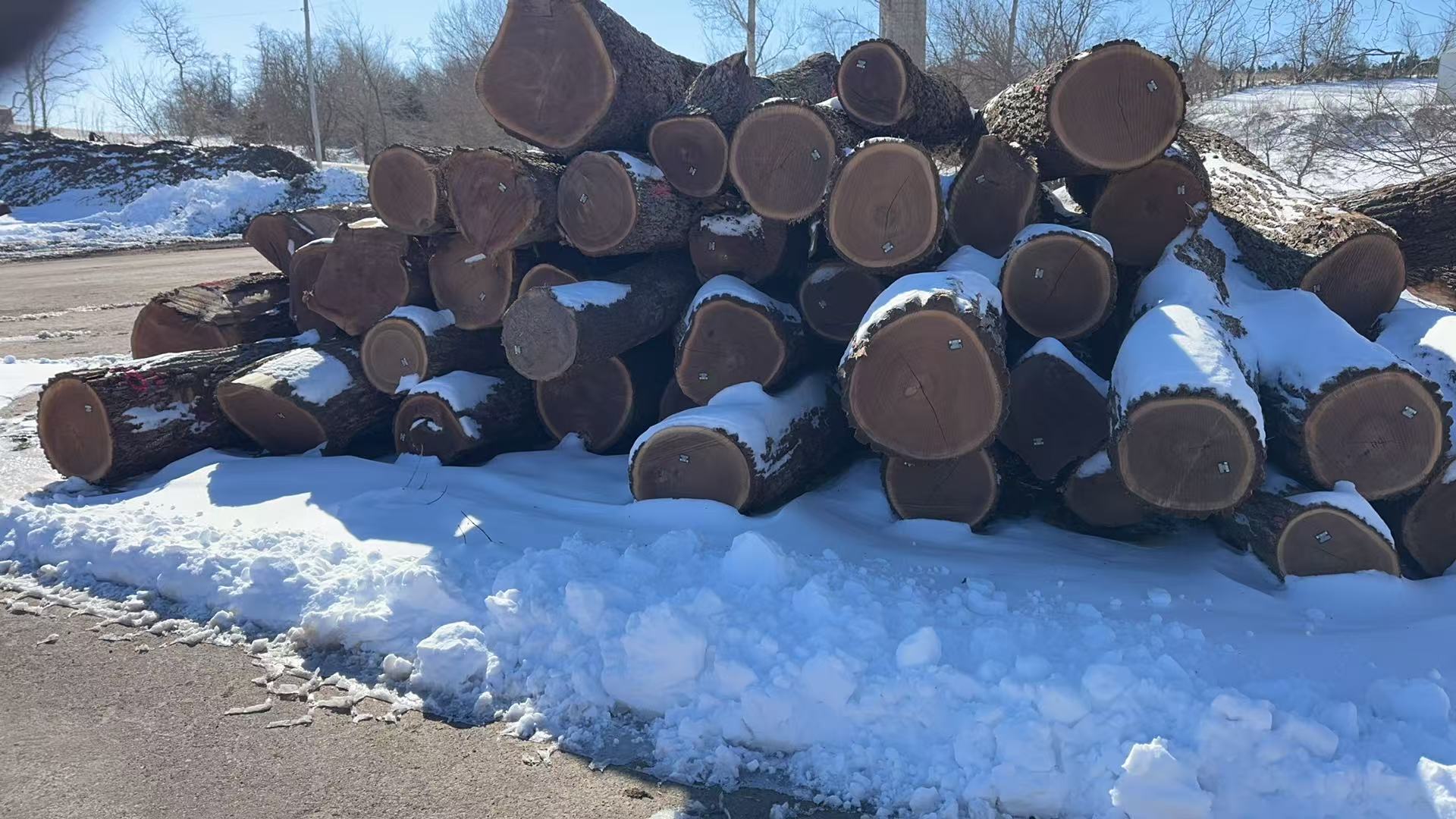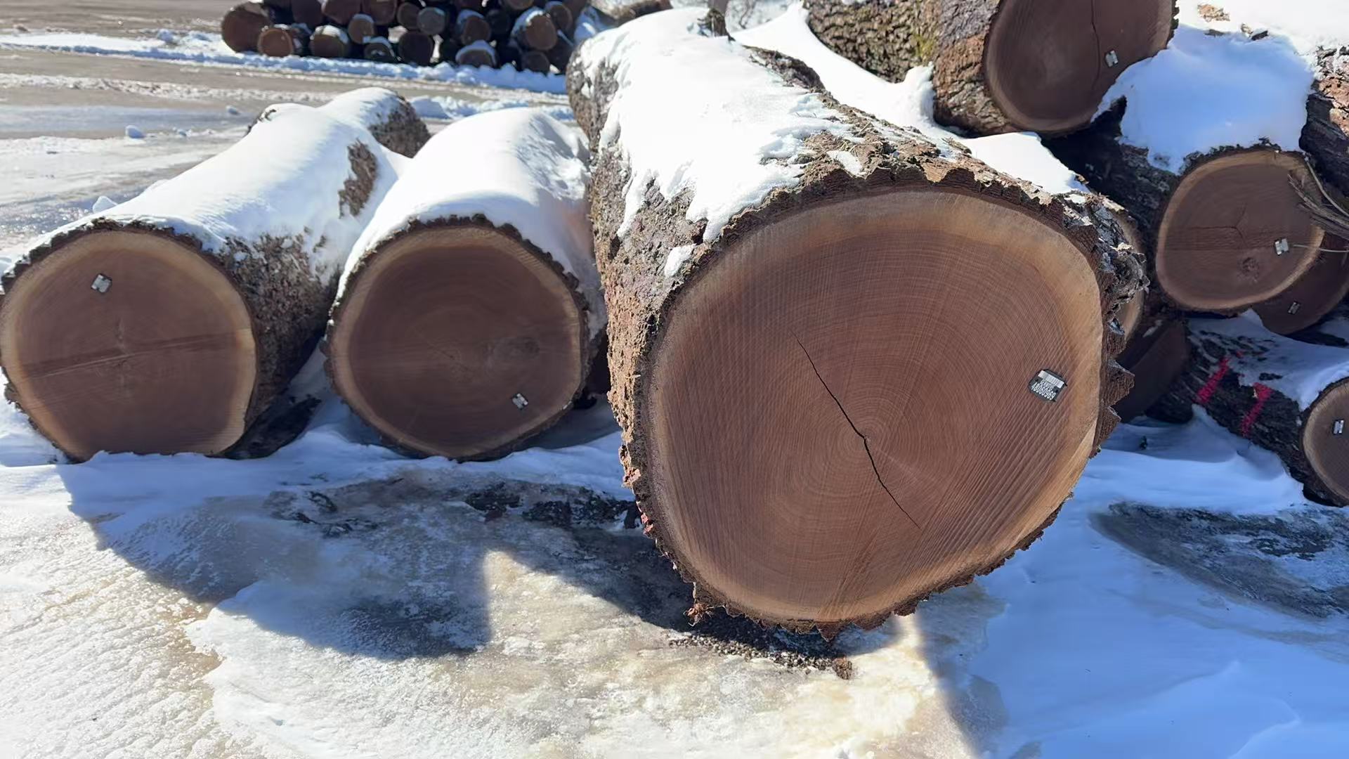 大量新鲜出炉的优质黑胡桃木